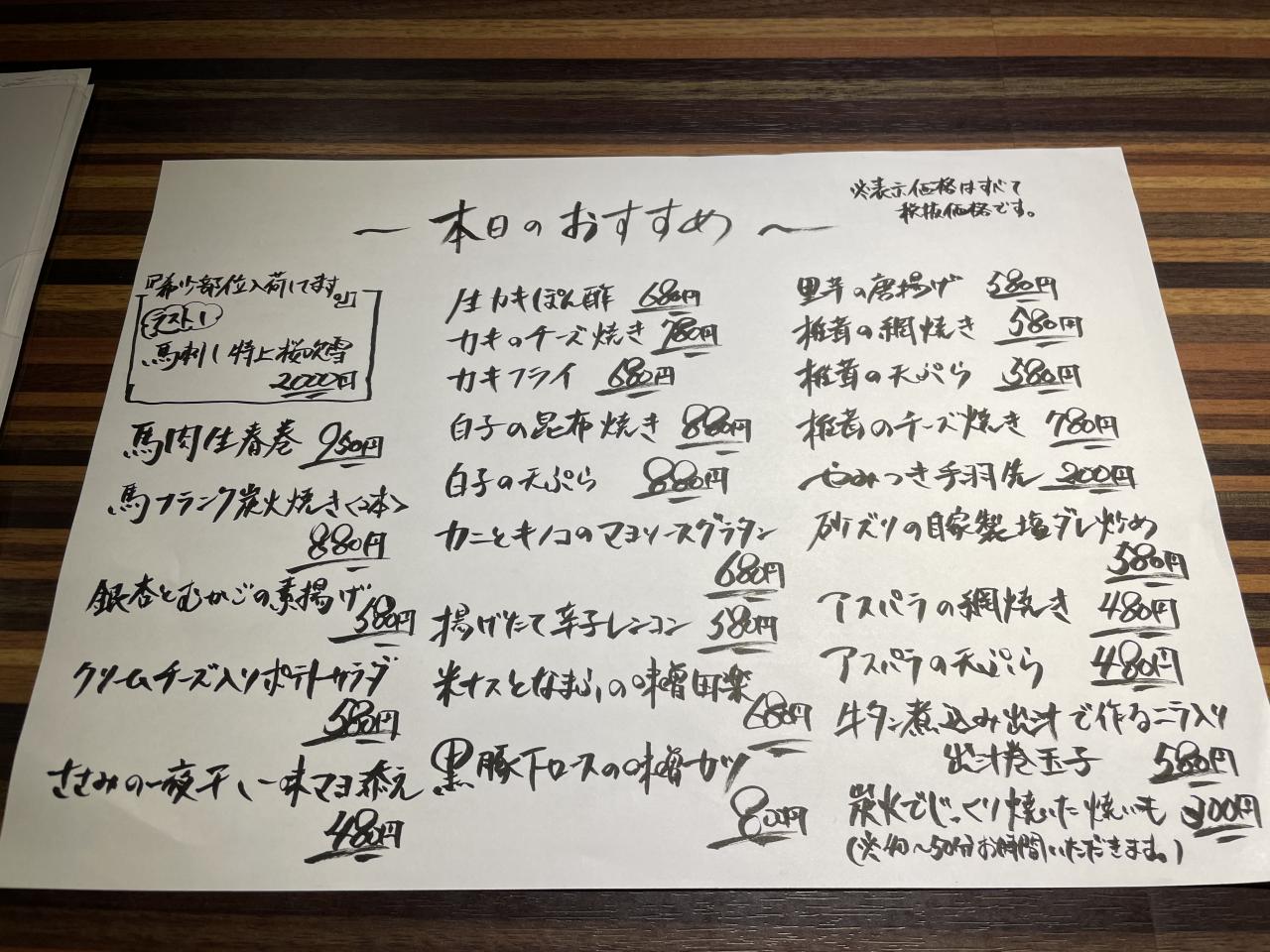 久々におすすめメニュー更新しましたー!真鱈の白子入ってます!あと今月分の馬刺し希少部位はラスト1つとなりましたのでお早めに!今日はテーブル2席、カウンター1席が空席になってますので皆様の来店お待ちしております!